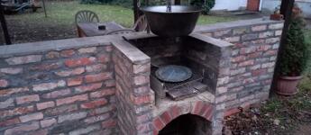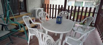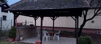 A kertben fedett kiülő és sütegő nyújt árnyékot nyáron.