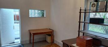 És igen, a kertből teljesen különállóan,de mégis olalával határos a műterem is, de hívhatjuk művész szobának, vagy hobbyszobának is!