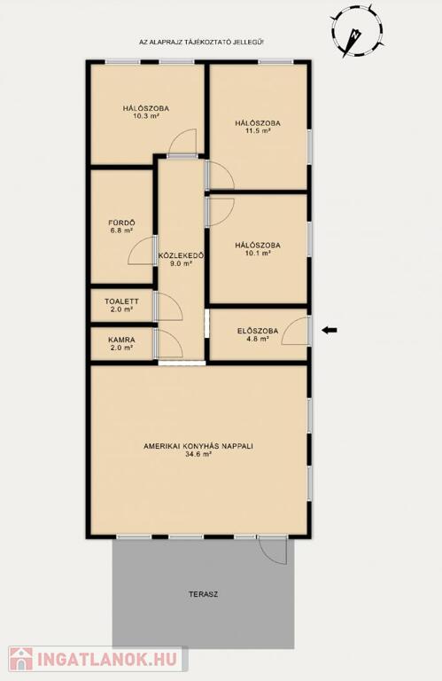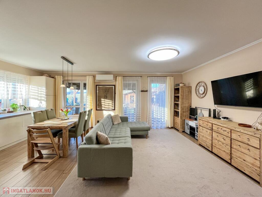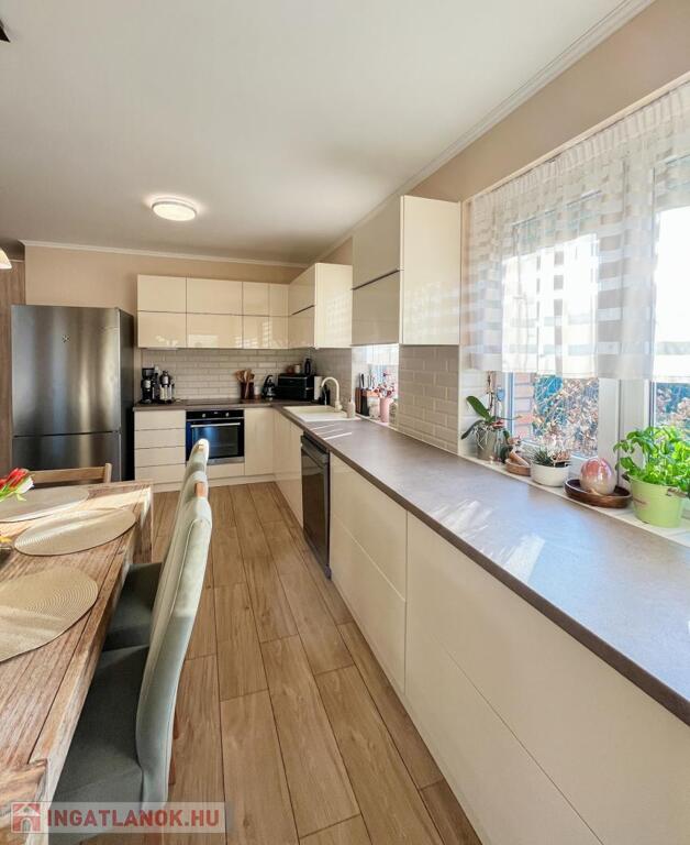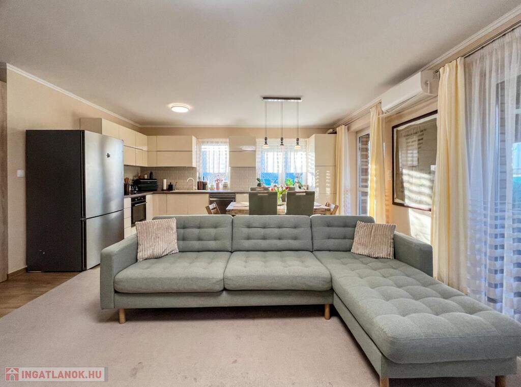• TÁGAS ÉLETTEREK: Óriási, 34 NM-ES AMERIKAI KONYHÁS NAPPALI a közös családi pillanatokhoz, és 3 KÜLÖNÁLLÓ, LAMINÁLT PARKETTÁS HÁLÓSZOBA a nyugodt pihenéshez.