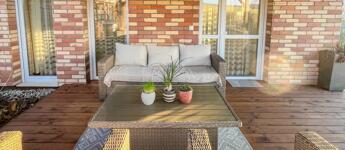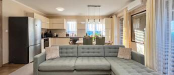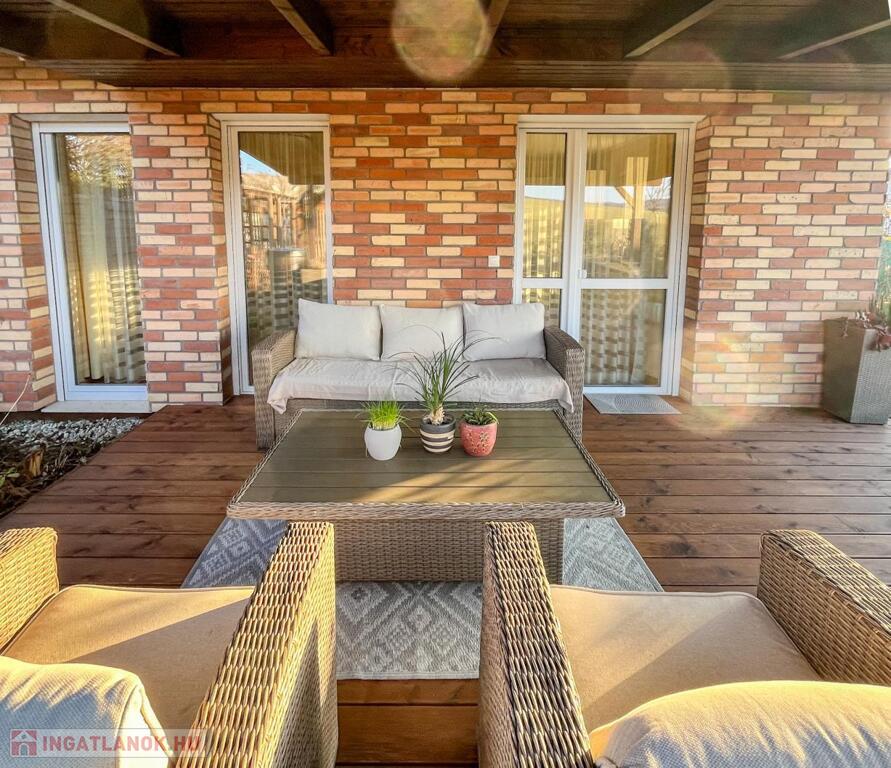 • PANORÁMÁS, 18 nm -es FEDETT TERASZ szibériai vörösfenyő padozattal és masszív borovi fenyő szerkezettel – tökéletes helyszín a nyári estékhez!