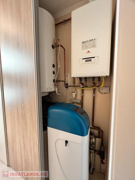 GÉPÉSZET, FŰTÉS ÉS HŰTÉS: Saunier Duval gázkazán felel a PADLÓFŰTÉSÉRT, a fürdőben pedig egy extra törölközőszárítós radiátor is helyet kapott. A gépészetet egy 100 literes melegvíztartály és egy beépített VÍZLÁGYÍTÓ teszi teljessé.