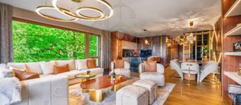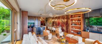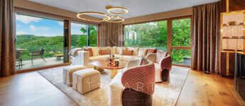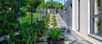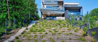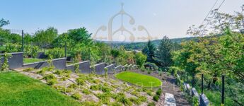 A 734 nm-es, gondosan kialakított lépcsőzetes telken álló ház minden négyzetmétere az igényességet és a minőséget tükrözi — a minőségi faburkolatoktól a mennyezetig érő ajtókig, a kristálycsillároktól a legapróbb, funkcionális részletekig.