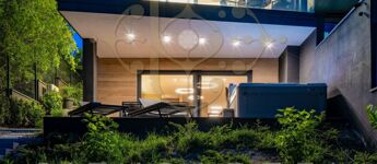 A legalsó szinten lévő wellnessrészlegben TechnoGym konditerem és Caldera Spa jakuzzi (önsózó, LED-világítással) teszi teljessé az otthoni pihenést és feltöltődést (itt padlófűtés, klíma és közvetlen kertkapcsolat van).