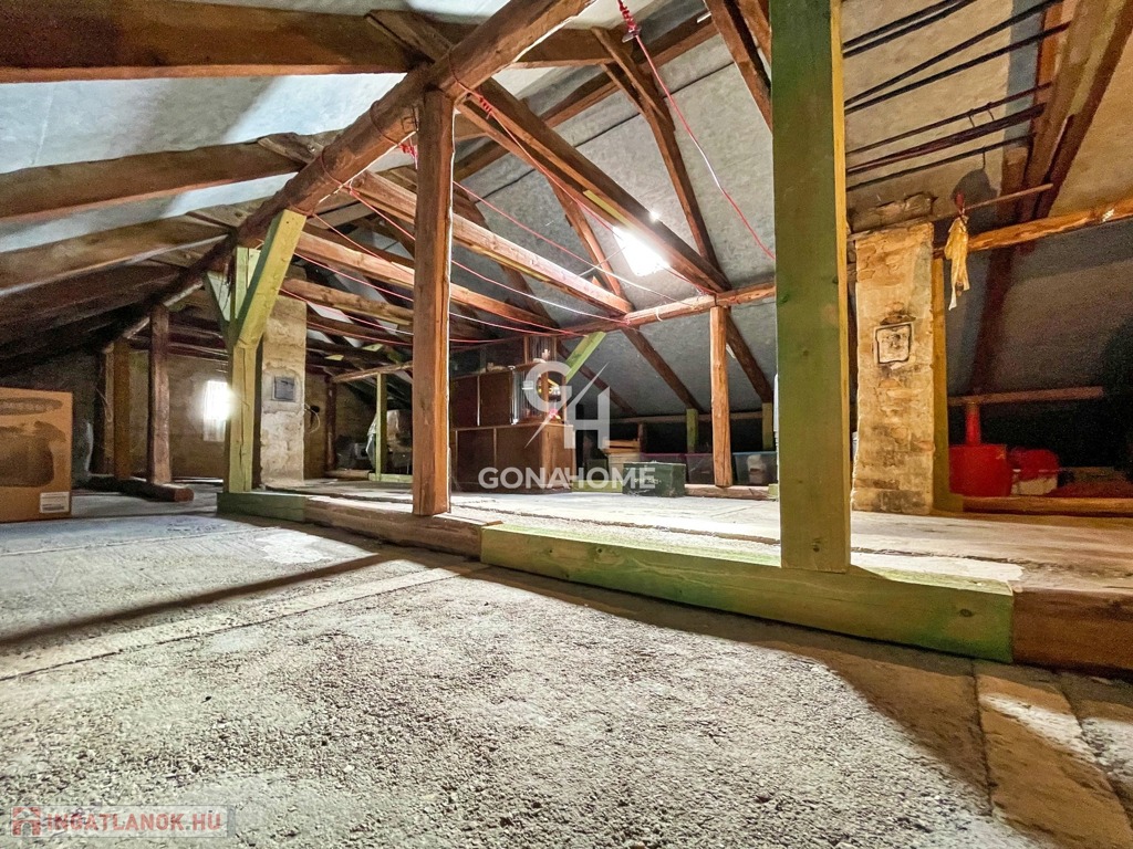 A tetőszerkezet több ponton VÖRÖSFENYŐ GERENDÁKKAL épült