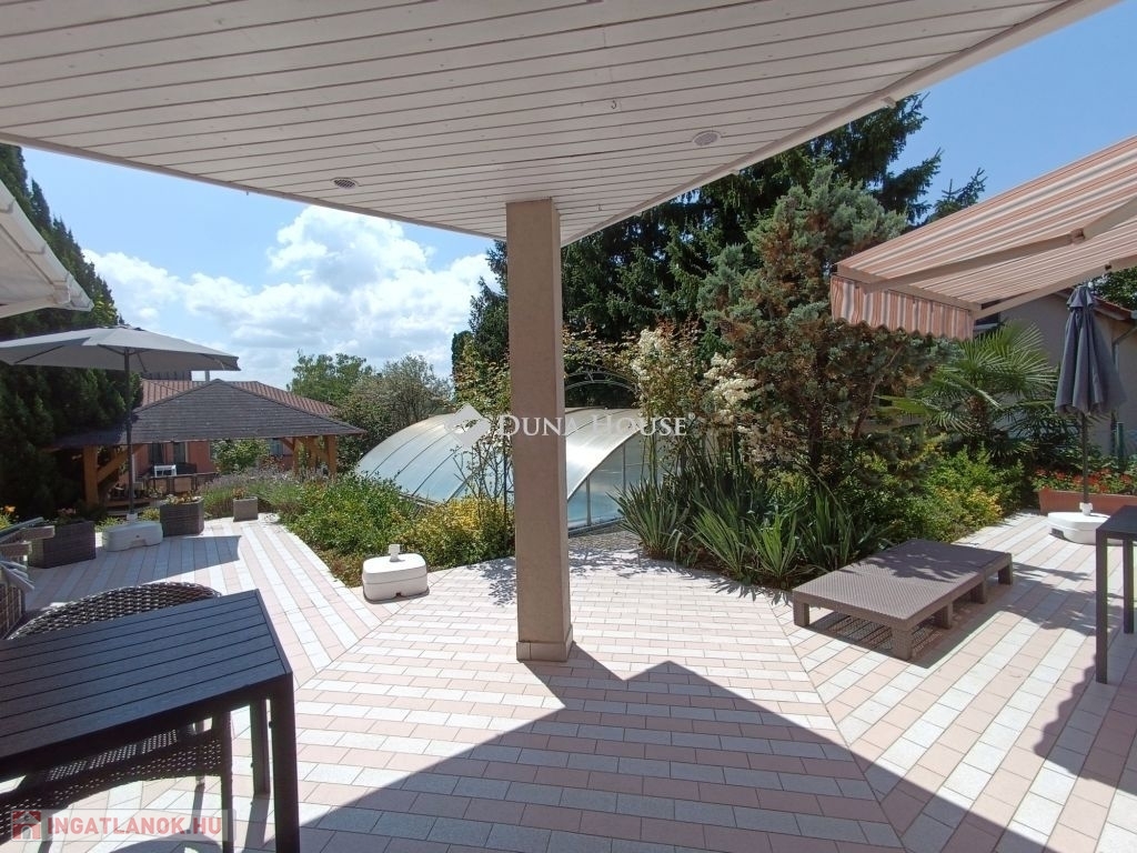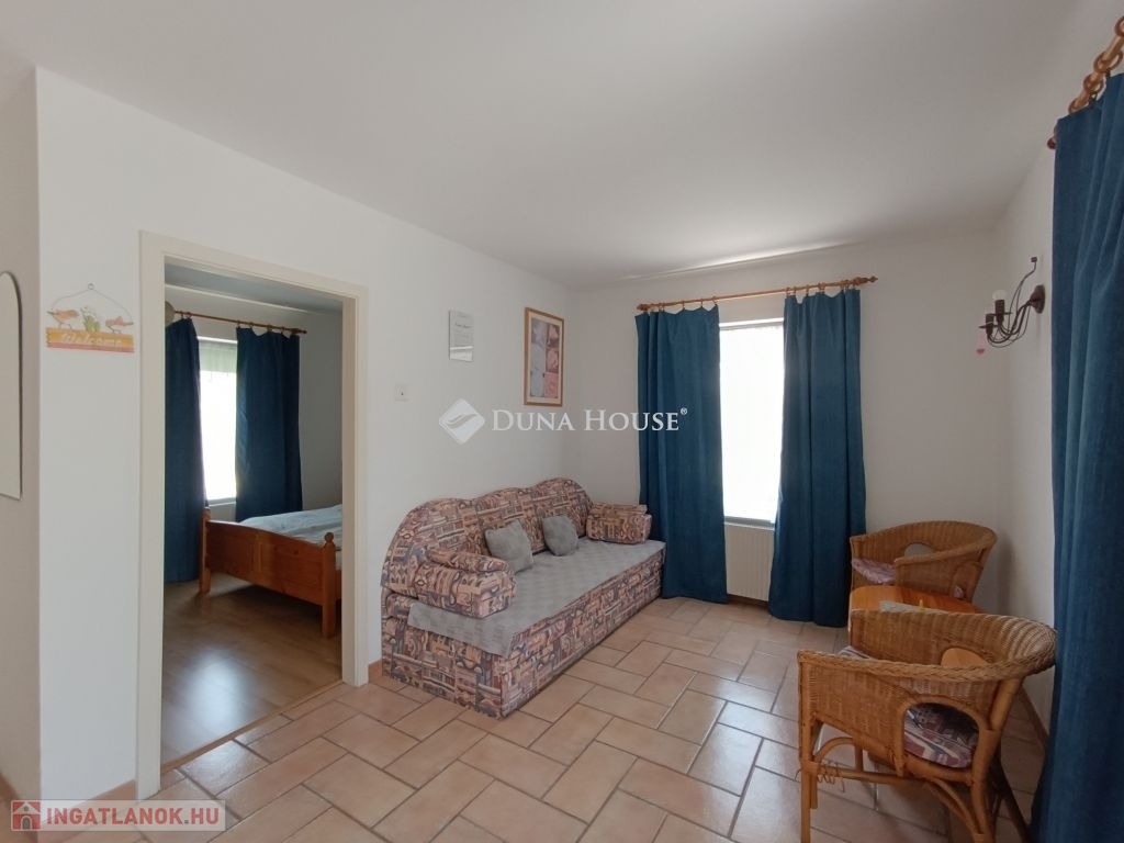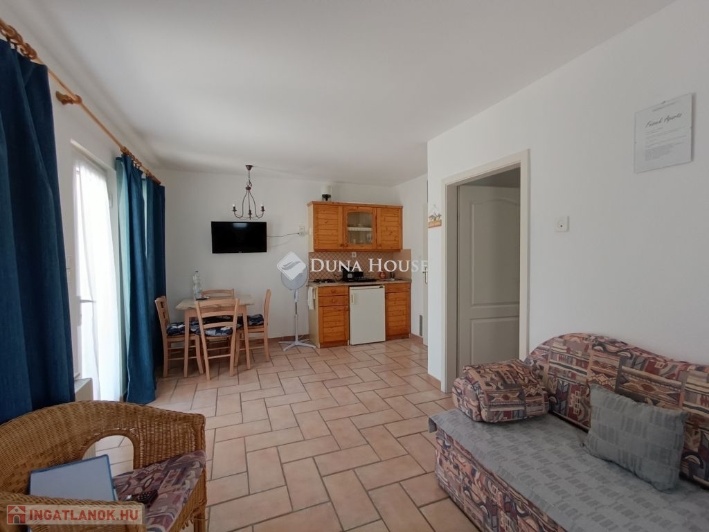 Az ingatlant egy kis utcából meg lehet közelíteni, ahol a gépkocsiknak van parkolási lehetőség. Az apartmanházat mediterrán stílusú sziklakert veszi körül virágokkal és fákkal, ahol egy fa pavilon, kiülő, grillező és egy 5x12 m-es fedett, de nyitható úszómedence is található.Az apartmanház fűtése radiátoros központi fűtési rendszerrel történik melyet gázkazán biztosítja. A meleg víz ellátást villanybojlerek adják.2014-től folyamatos karbantartással üzemel, 2022-ben a Kisfaludy program keretében tető felújítást, burkolatok, vizes helyiségek felújítását, nyílászárok cseréjét, a medence burkolását végezték el.Az eladó apartmanház telke teljesen különálló, egyéni helyrajzi számmal, külön közműellátással, külön bejárattal.