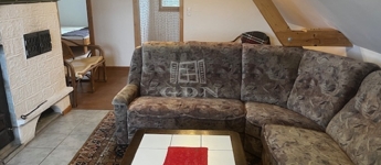 Az emelet kialakítása 2000-ben történt meg, német tulajdonosainak köszönhetően. Az emelet 62,5 m2-es, amerikai konyhás nagy nappalival rendelkezik és 2 azonos nagyságú hálószobával. Mindkét szoba 10,2 m2-es , nappaliból nyílnak.