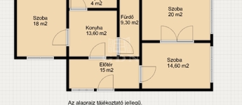 - 94 m2 - en ad helyet egy előtér - folyosó együttesnek, 3 szobának, egy konyhának és az abból nyíló kamrának, valamint egy fürdőkáddal és toalettel felszerelt fürdőszobának.
