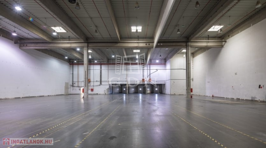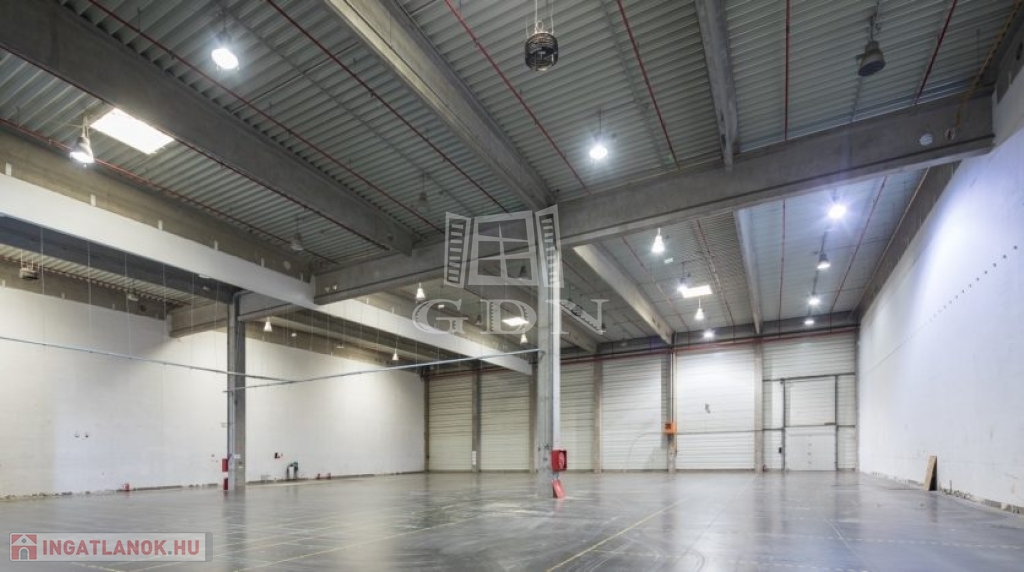A logisztikai központ földszintjén nagy belmagasságú fűthető raktár található, amely belmagassága 10,5 m, könnyen állványozható.