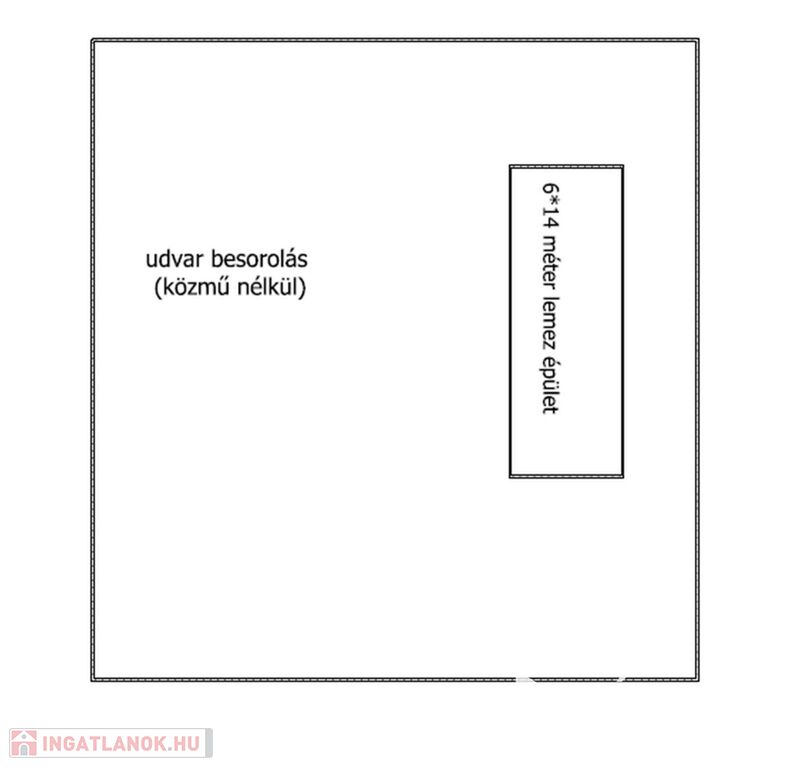 Az ingatlanon egy 6*14 méter alapterűletű lemezgarázs is található, amely zárható raktározásra is alkalmas.