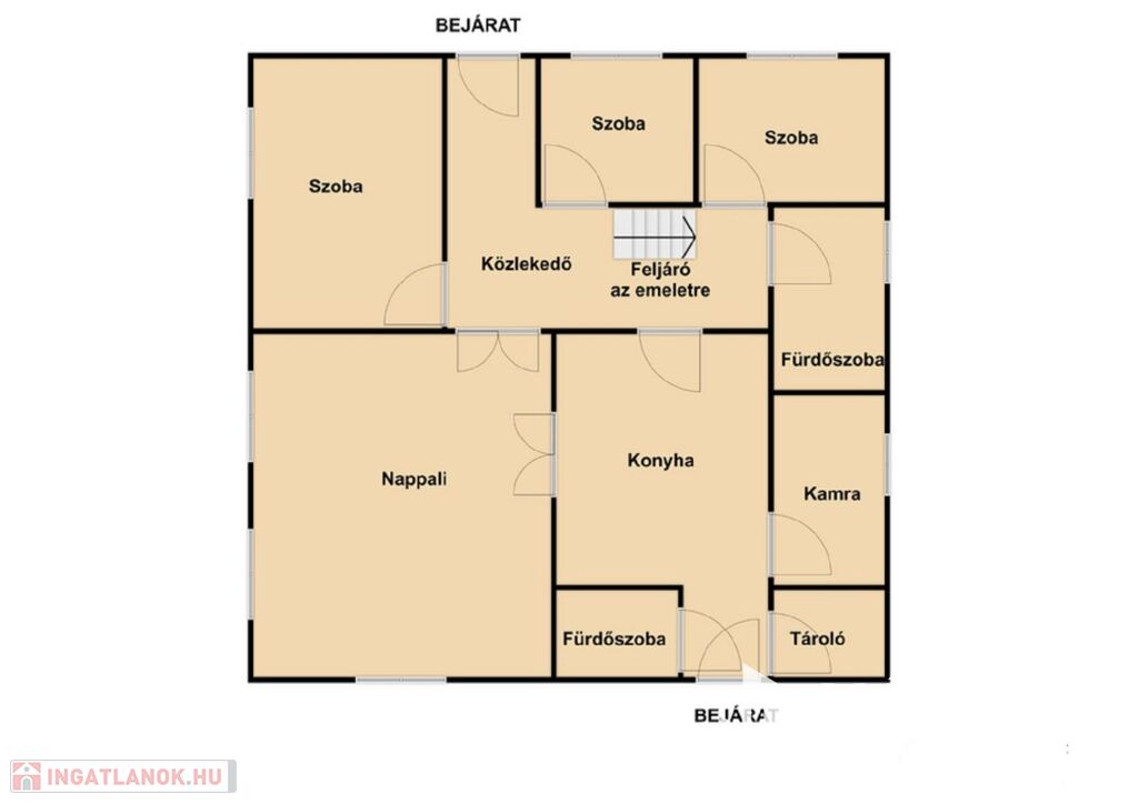 Jelenleg nappali mellett kionyhával, nappalival, 5 lakószobával, 2 fürdőszobával, tárolóval rendelkezik, de a tetőtér beépítésével további 2-3 szobát nyerhetünk fürdőszobával.
