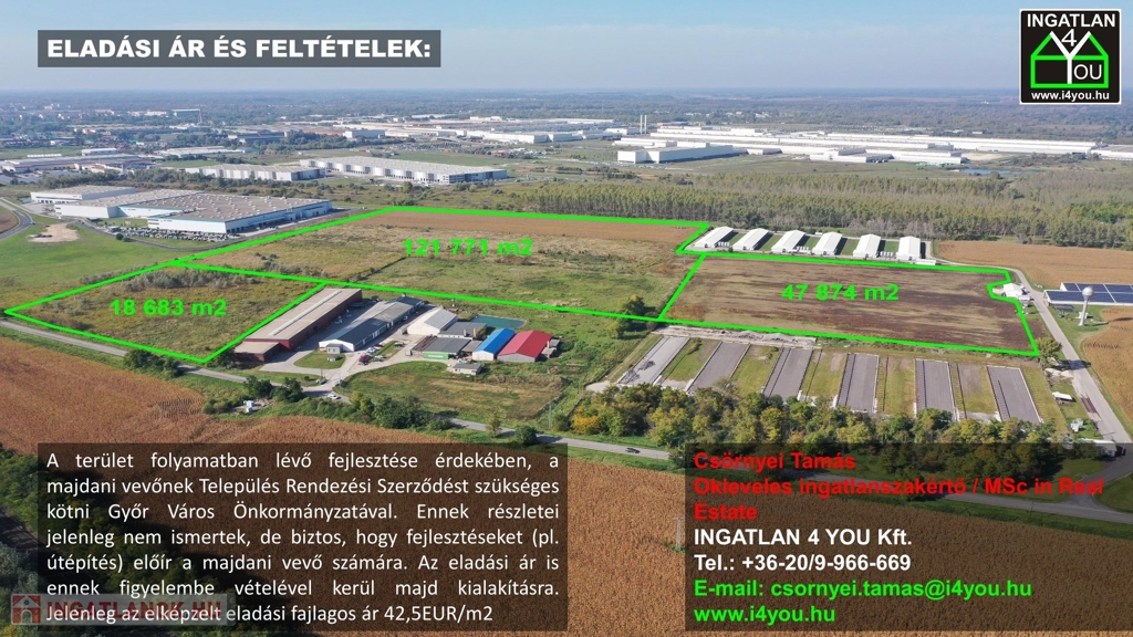 A fenti lehetőségeket alátámasztja, hogy jelenleg Győrben és környékén nincs kellő számú bérelhető ipari, logisztikai létesítmény, valamint nincs építésre alkalmas telek. A terület elhelyezkedése pedig nagy mértékben csökkenti a befektetői kockázatot, mivel 2 km távolságban (légvonalban 500 m) helyezkedik el az Auditól. Az ipari ingatlanok bérleti díja és a telkek eladási ára ezen távolság függvénye.