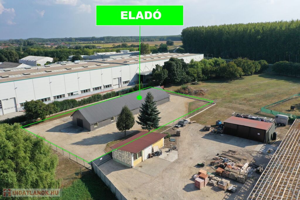 Győrladaméron modern, ipari környezetben, 2.617 m2-es telken elhelyezkedő, 346 m2-es, felépítmény, (330 m2 csarnok, műhely, valamint 8 m2 iroda és szociális részek) eladó.