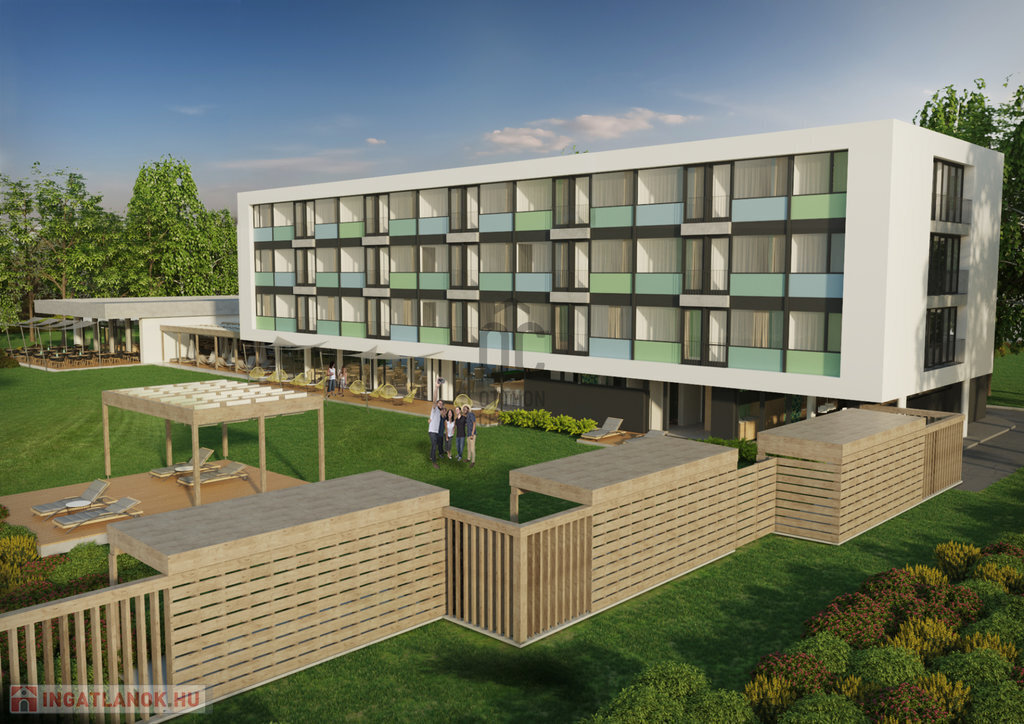 A telken a ’70-es évek elején épült szálloda- és étteremépületek állnak, összesen 66 darab kétágyas szobával. A telek elhelyezkedése, mérete és vízparti adottságai miatt kiemelkedő lehetőséget kínál turisztikai, szállodai vagy komplex fejlesztési célokra.