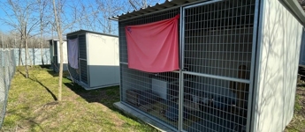A kutyák mozgásigényéhez kb. 2000 m²-es füves futtató és 7000 m²-es saját erdős terület áll rendelkezésre. Az ingatlan masszív lemezkerítéssel és kamerarendszerrel maximálisan biztonságos.