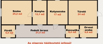 - 120m2-es tanyaépület több helyiséggel és lakható résszel (szoba, konyha, fürdőszoba, kutyaszoba, kozmetika, orvosi szoba, tároló és fedett terasz)