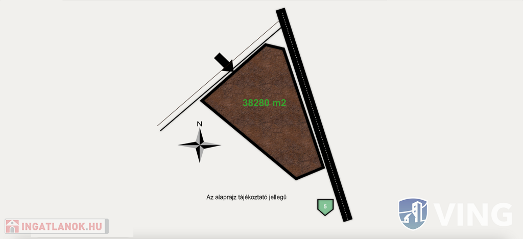 Az összefüggő földterület közvetlenül az 5. számú főút t mellett található és tökéletesen alkalmas napelem farm létesítésére. Legközelebbi betáplásra alkalmas hálózati csatlakozási pont 200 méterre.