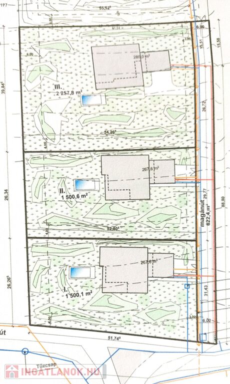 Három, egymás mögött lévő telek-együttes első ingatlana.