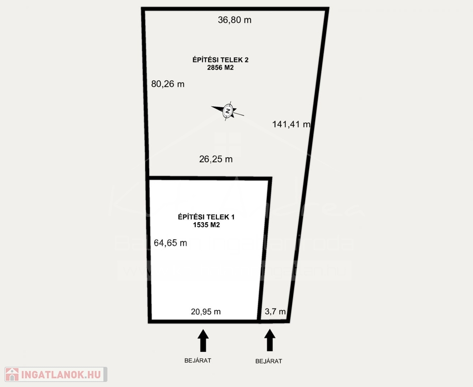 The total area of the two plots is 4,391 m² (1,535 m² + 2,856 m²).