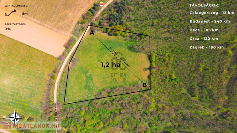 Zalaegerszegtől 12 km-re, nyugatra, Kávás területén eladó egy 1,2 hektár méretű telek.