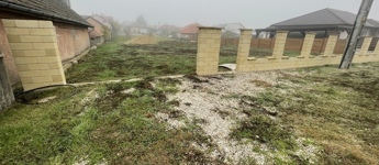 Utca fronton kerítés befejezésre vár, a közművek közül villany, gáz, csatorna a telken belül, a vizet be kell még vezetni!