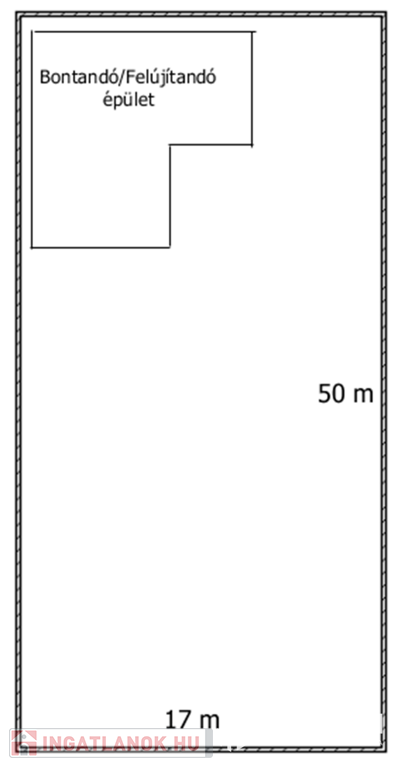 Széles utcafronttal (17 méter) rendelkezik, sík, szabályos méretű, az egyetlen ilyen a környéken.