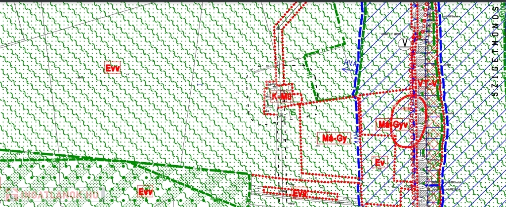 Az övezetben épületet elhelyezni nem lehet, mert Evv besorolású, elsődlegesen védelmi rendeltetésű, védett erdők övezete.