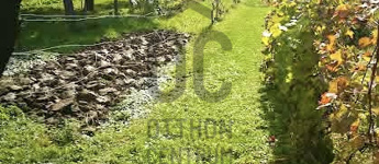 A gondozott kertben többféle gyümölcsfa található: cseresznye, őszibarack, szilva, alma és diófa.