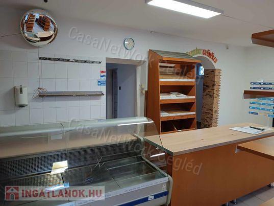 - Az eladótér nagysága 52 m2, amiben modern igényes polcrendszer és húsáruk tárolására alkalmas hűtő is található, a felső raktár 9 m2 itt a lift, a 7.5 m2- es folyósóról nyílik a 4 m2-es iroda helység, a 3 m2-es előkészítő és a 1,5 m2- es WC, valamint a hátsó kijárat,